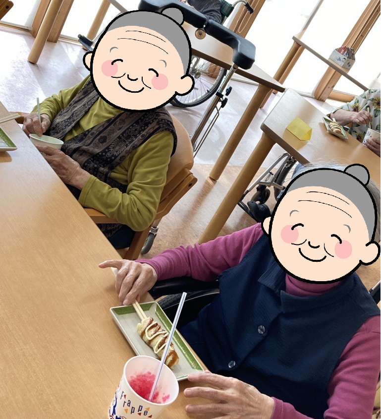 7月18日には、夏祭りが行われました。午前中から利用者様と一緒にご飯をつぶし形を整え、みそたんぽを作り炭で焼き、お昼に提供されました。午後からは夏祭りにおなじみの屋台で楽しんでいただきました。かき氷、射的、金魚すくいなどを行い、職員手作りのおみこしも登場し大盛り上がりでした!!