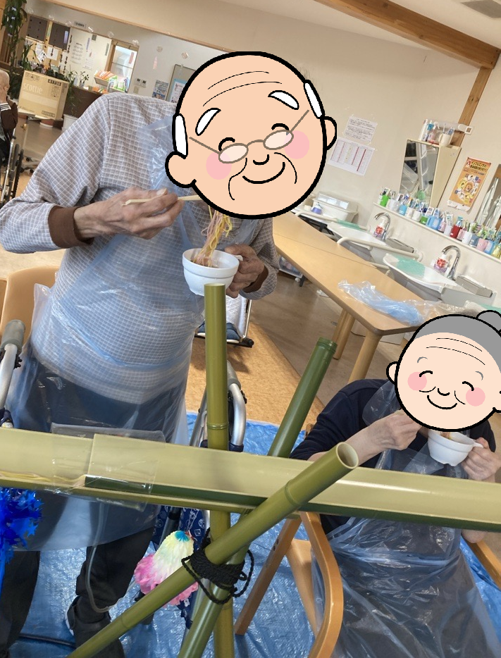 8月7日には、夏の風物詩、流しそうめんを行いました。勢いのあるそうめんを上手にすくって召し上がっていただき、大盛況でした!