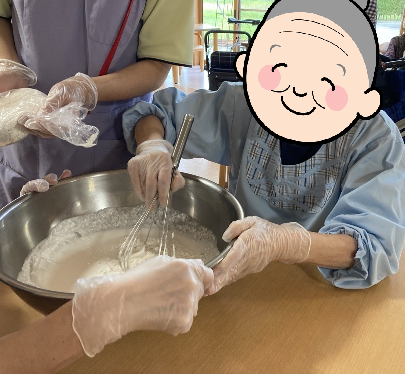 9月25日には、おやつレクが行われました。今回はじめてのおやきづくりに挑戦しました。豆腐と白玉粉を使用しあんこを包んでホットプレートで焼き完成!施設内が香ばしい匂いがただよい、出来上がりもとても柔らかく食べやすかったです。