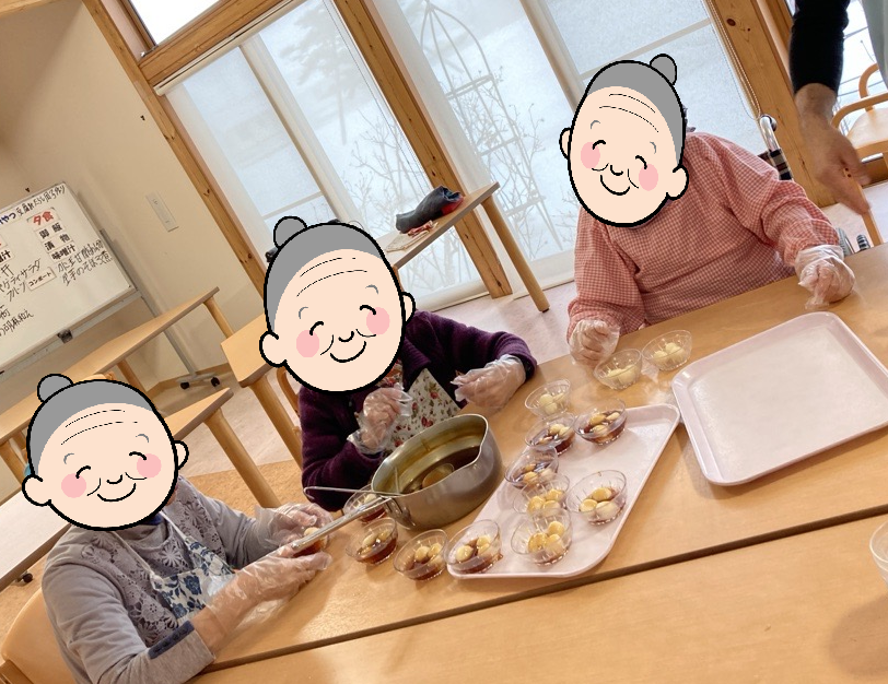 1月20日には、おやつレク「豆腐白玉みたらし団子作り」が行われました。ご利用者様に豆腐と白玉粉を混ぜ合わせ丸めていただき、茹でた後にみたらしのタレをからめたら出来上がり!!柔らかくて美味しいと喜ばれました。