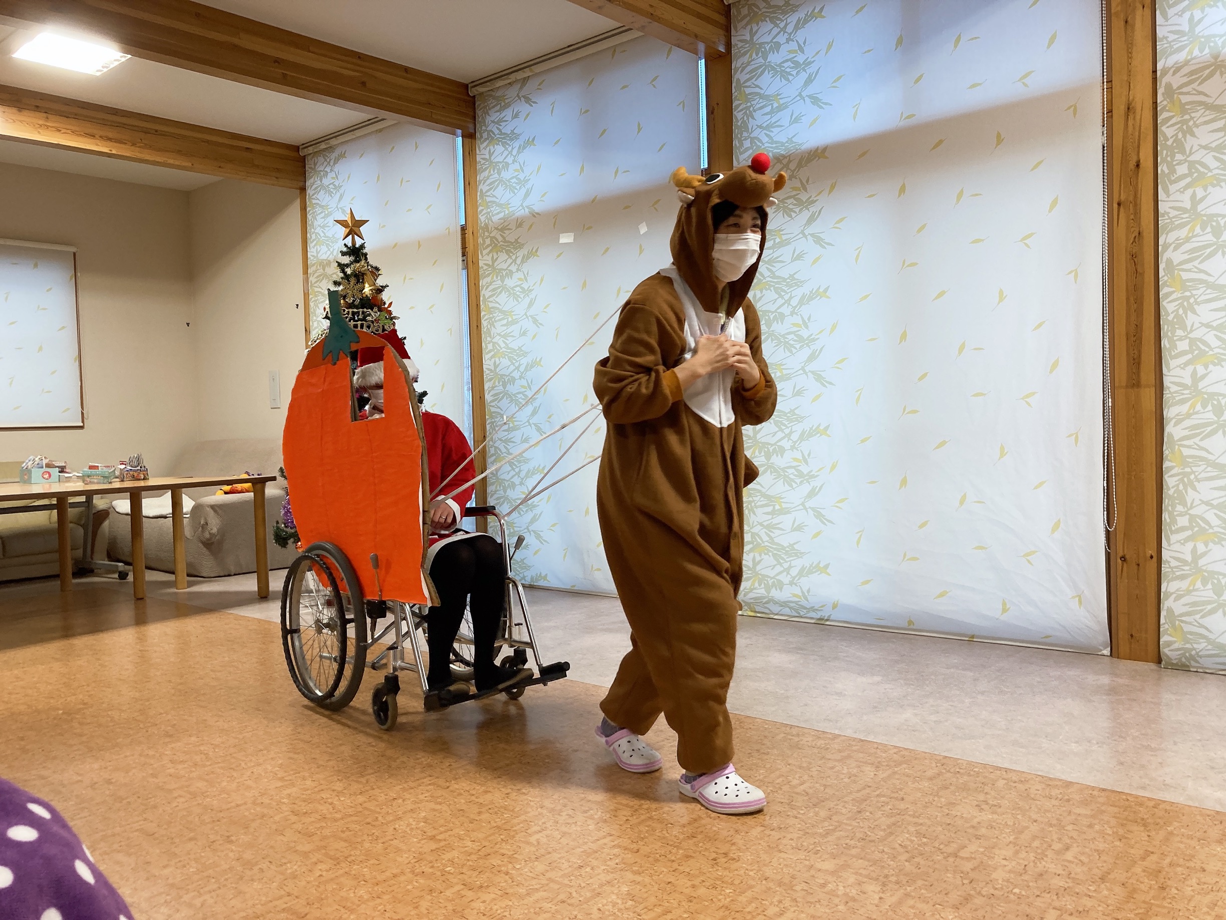 12月24日にクリスマス会を行いました。職員によるシンデレラの劇では新調した衣装とコミカルな演技に利用者様も大変喜ばれており手をたたいて大笑いしている様子も見られました♬最後にサンタクロースからプレゼントも貰いましたよ🎅