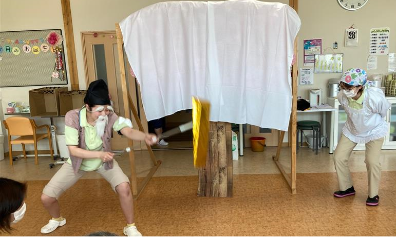 4月28日にはあいのもり劇団による「はなさかじいさん」が披露されました!!職員のコミカルな演劇