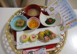 124年ぶりの節分の日(2月2日)の昼食は 行事食として籠の器に卵巻き寿司やいなり寿司をのせて 提供しました。 また、レクリエーションの時間には鬼が3体登場して 豆まきを行い、皆様の無病息災を祈念しました。 2月15日にはバレンタインの行事として ...